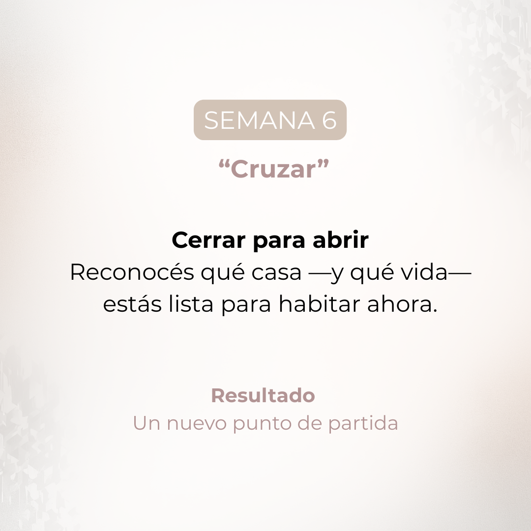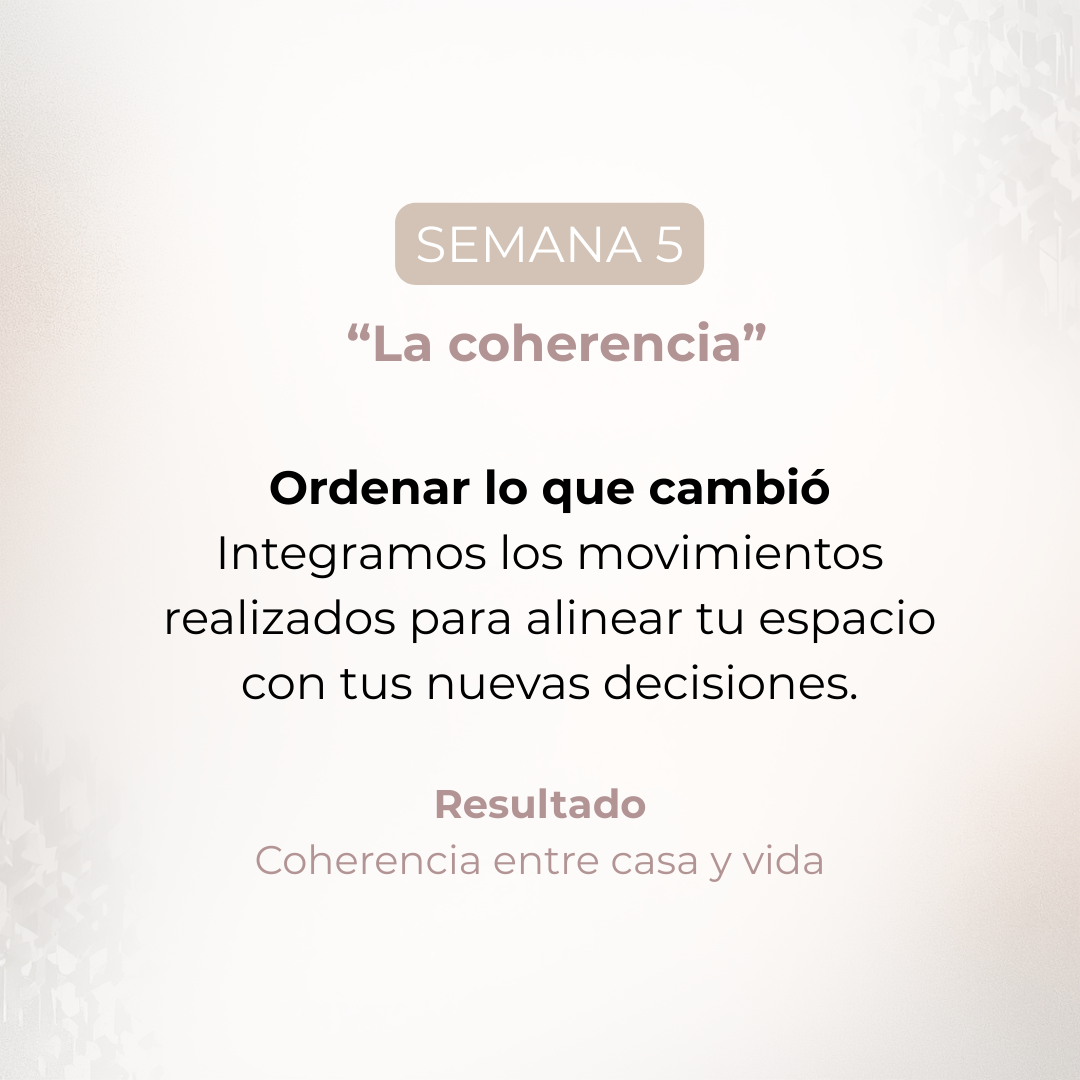 Un encuentro de onboarding individual de 30 minutos conmigo, donde revisaremos algunos datos de tu casa y de tu momento vital para preparar el proceso.